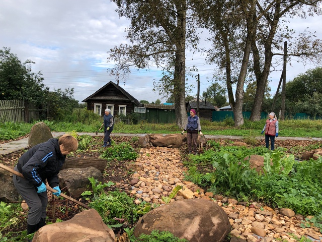 В строительных работах помогали жители села. dzen.ruНа одном из валунов установили табличку с надписью: «Дань уважения основателям села от благодарных потомков». Сегодня эту территорию поддерживают в порядке сами жители села: выкашивают траву, высаживают цветы, деревья.